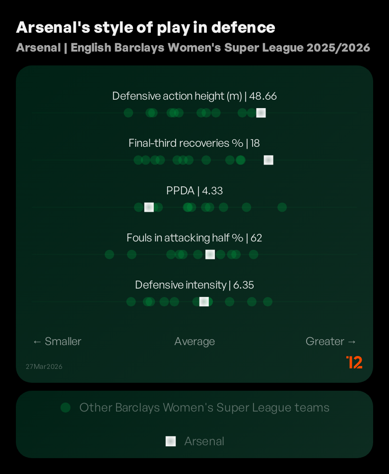 Defensively, Sleger’s gets her team to win the ball high up the pitch. You might also notice the slightly above average percentage of fouls they gave away in the attacking half…